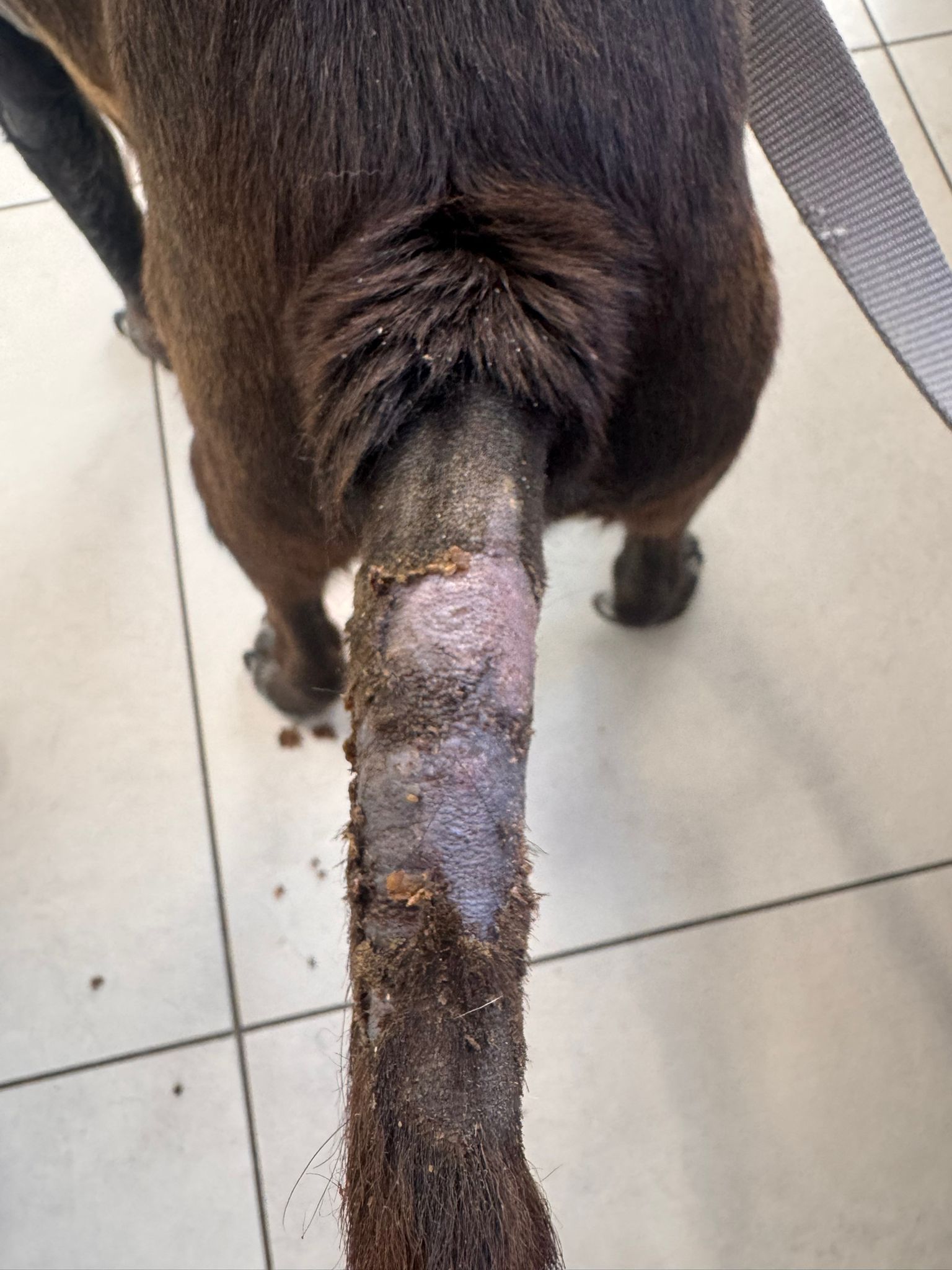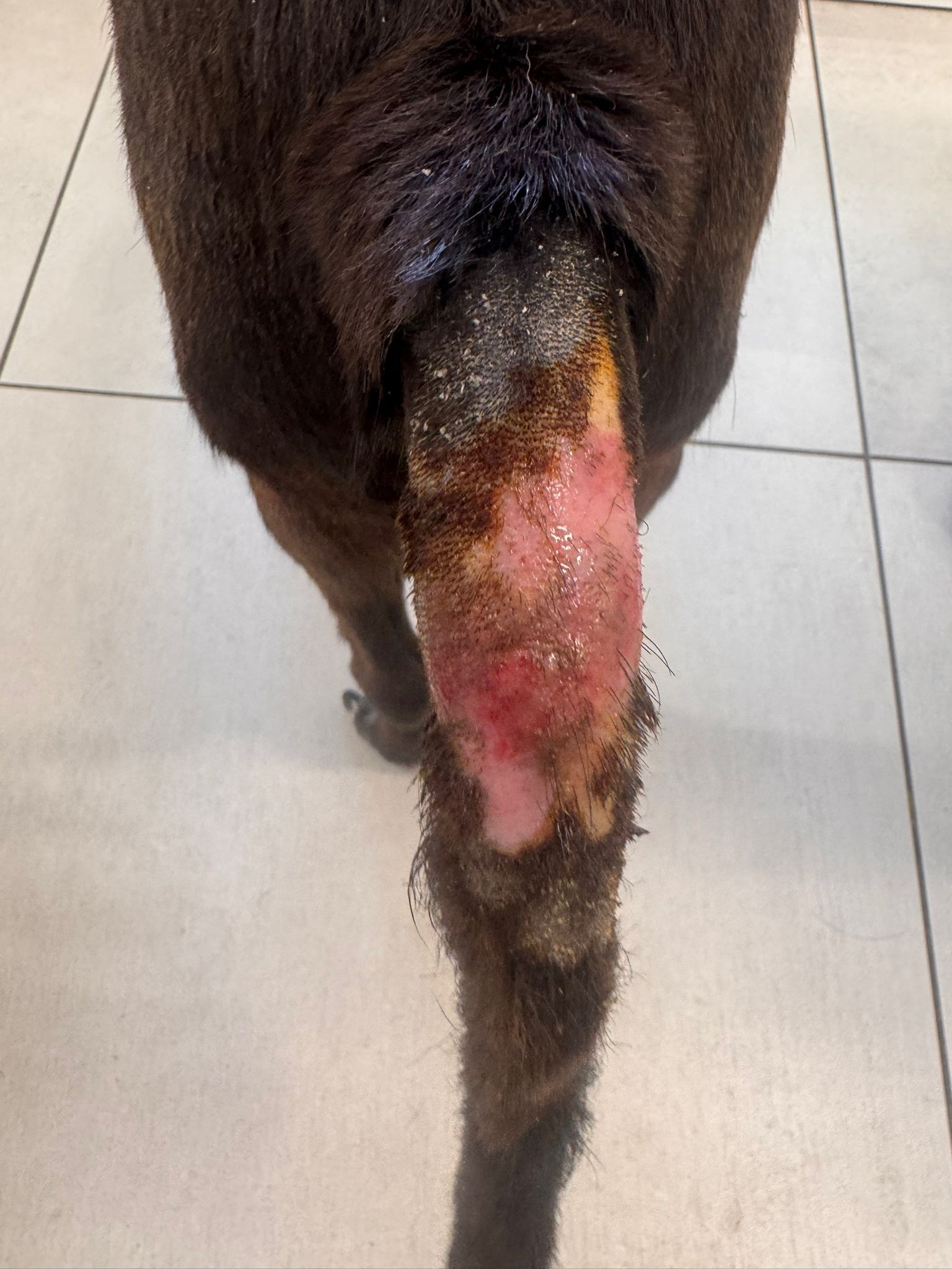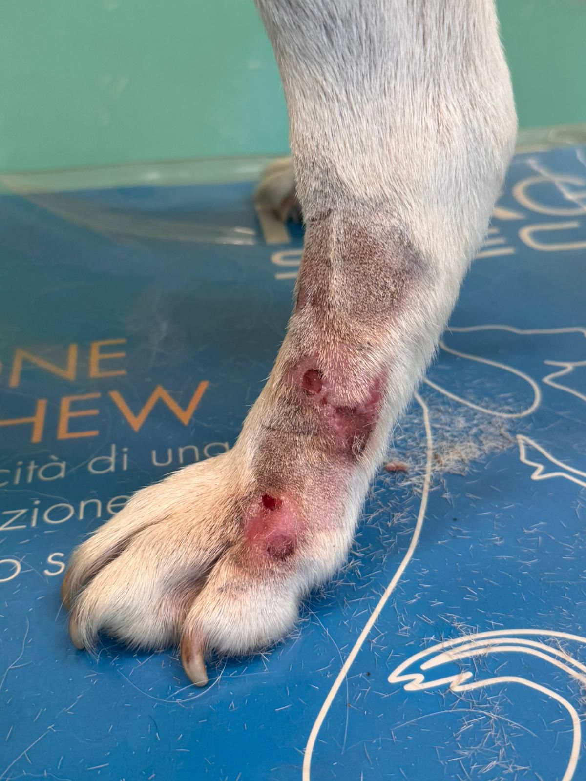 La schiuma Itioxide forma una barriera protettiva, riduce la carica batterica e favorisce la guarigione locale, senza necessità di antibiotici sistemici. Le foto prima/dopo mostrano un miglioramento evidente.
